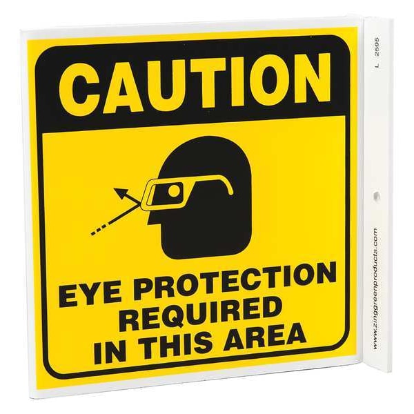 Caution Sign, Sign Subject Matter Personal Protection, Height 7 in, Width 7 in, Sign Material Plastic, Header Caution, Legend Eye Protection Required In This Area, Printed Language English, Sign Shape L-Shaped