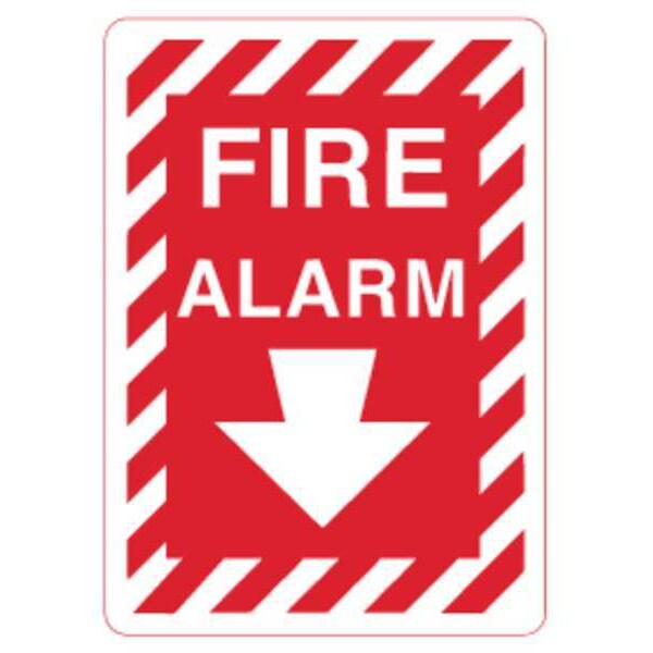 Fire Alarm Sign, Down Arrow, 14X10"