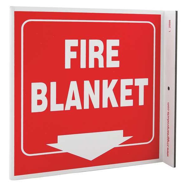 Fire Blanket Sign, Sign Subject Matter Fire Equipment, Height 7 in, Width 7 in, Sign Material Plastic, Sign Mounting Style With Mounting Holes, L-Shaped, Legend Fire Blanket, Printed Language English, Sign Shape L-Shaped