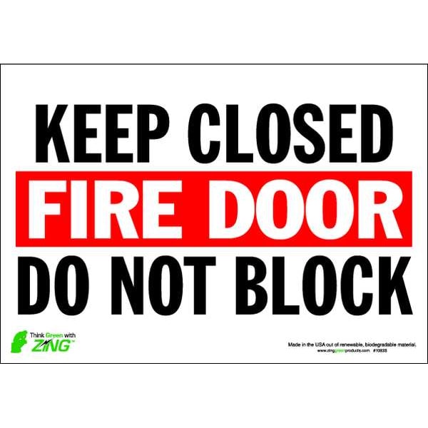 Fire Door Sign, Sign Subject Matter Exit and Entrance, Height 7 In., Width 10 In., Sign Material Polyester, Sign Mounting Style Adhesive Surface, Legend Fire Closed Fire Door do not Block, Printed Language English, Sign Shape Rectangle