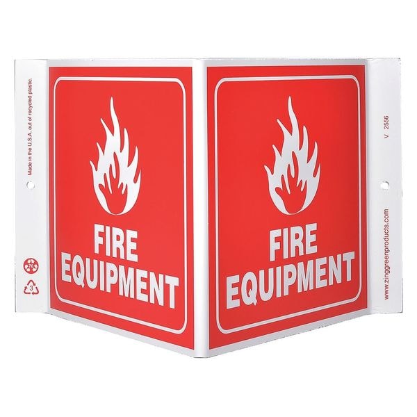 Fire Equipment Sign, Sign Subject Matter Fire Equipment, Height 7 in, Width 12 in, Sign Material Plastic, Sign Mounting Style With Mounting Holes, V-Shaped, Legend Fire Equipment, Printed Language English, Sign Shape V-Shaped