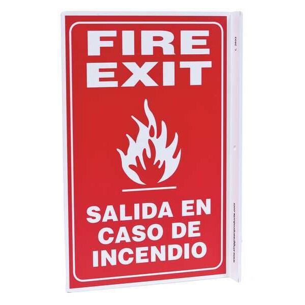 Fire Exit Sign, 11" Height, 8" Width, Plastic, L-Shaped, English, Spanish