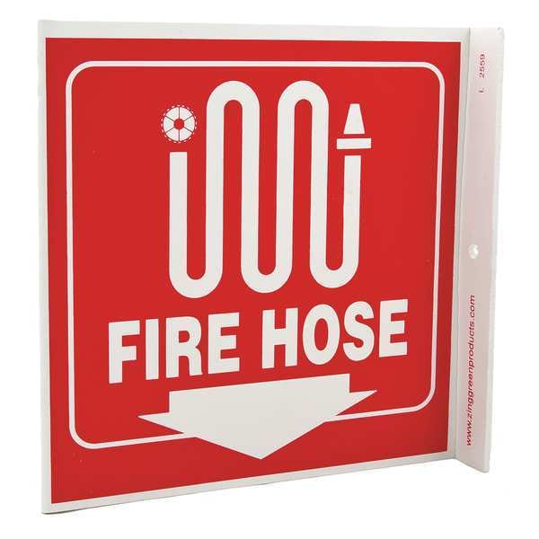 Fire Hose Sign, 7 in Height, 7 in Width, Plastic, L-Shaped, English