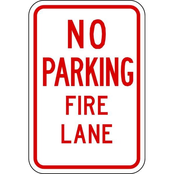 Fire Lane Sign, Height 18 in, Width 12 in, Sign Material Aluminum, Sign Mounting Style Surface, Printed Language English, Sign Shape Rectangle