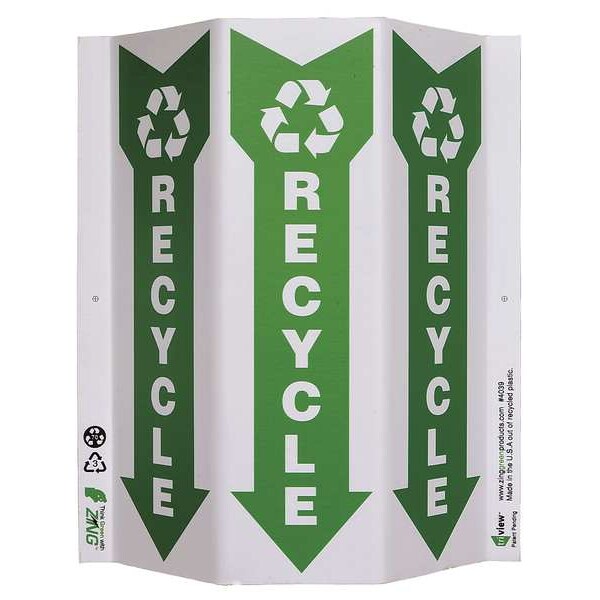 Recycling Sign, Sign Subject Matter Recycling, Height 12 In., Width 9 In., Sign Material Plastic, Sign Mounting Style With Mounting Holes, V-Shaped, Header Green@Work, Legend Green@Work(TM) Recycle, Printed Language English