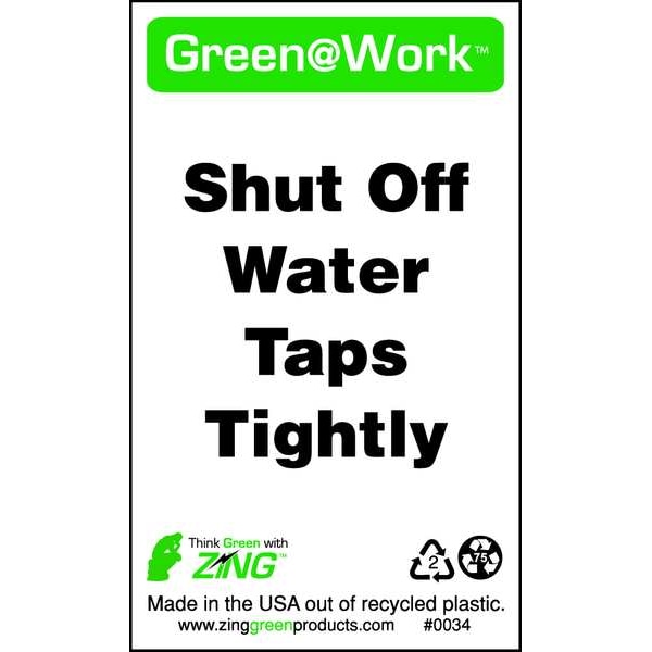 Green at Work(TM) Shut Off Water Taps Tightly, Plastic, 5" x 3", Surface