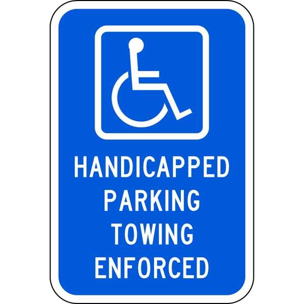 Handicap Parking Sign, Height 18 in, Width 12 in, Sign Material Aluminum, Printed Language English, Sign Shape Rectangle