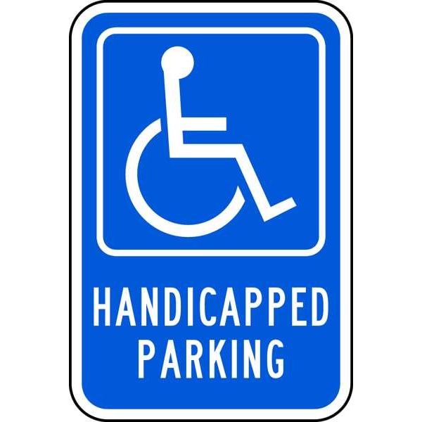 Handicap Parking Sign, Height 18 in, Width 12 in, Sign Material Aluminum, Printed Language English, Sign Shape Rectangle