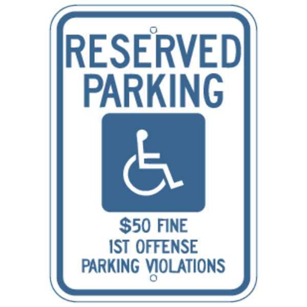 Handicap Parking Sign, Height 18 in, Width 12 in, Sign Material Aluminum, Printed Language English, Sign Shape Rectangle