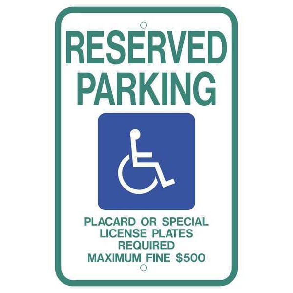 Handicap Parking Sign, Height 18 in, Width 12 in, Sign Material Aluminum, Printed Language English, Sign Shape Rectangle