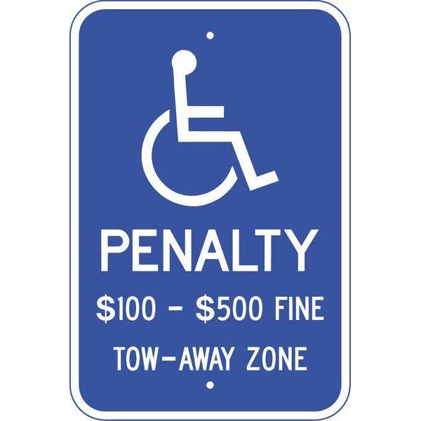 Handicap Parking Sign, Height 18 in, Width 12 in, Sign Material Aluminum, Printed Language English, Sign Shape Rectangle