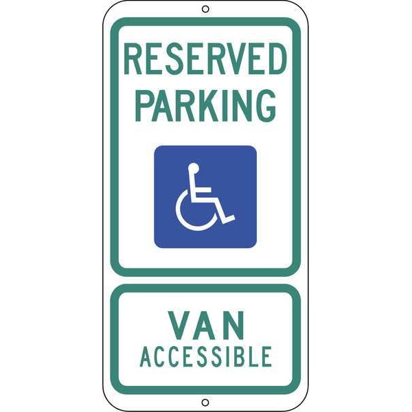 Handicap Parking Sign, Height 24 in, Width 12 in, Sign Material Aluminum, Printed Language English, Sign Shape Rectangle