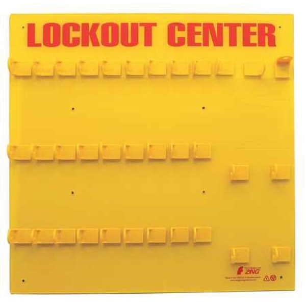 Lockout Board, Cable Lockouts Included Not Applicable, Cover Type Open Front, Electrical Lockouts Included Not Applicable, Filled No, Number of Hasps Included 0, Number of Lockouts Included 0, Number of Padlocks Included 0, Number of Tags Included 0, Visibility Inside Board Only, Language English, Background Color Yellow, Includes Lockout Tagout Board, Legend Lockout Center, Legend Type Text, Material Plastic, Mounting Location Wall, Number of Compartments 0, Number of Hooks 33