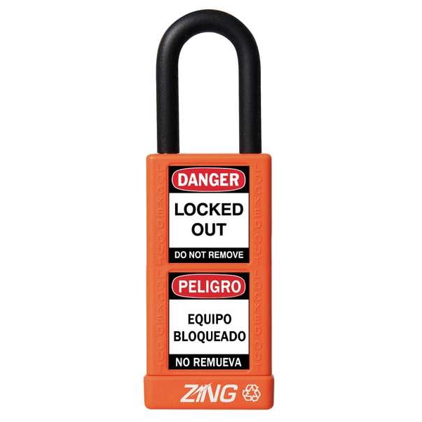 Lockout Padlock, Body Color Orange, Body Height 3 in, Body Material Aluminum, Body Thickness 3/4 in, Body Width 1 1/2 in, Header Danger, Horizontal Shackle Clearance 3/4 in, Key Style Standard, Key Type Keyed Alike, Non-Removable Key Yes, Resistance Properties Corrosion Resistant, Shackle Diameter 1/4 in, Shackle Height 1 1/2 in, Shackle Material Steel, Shackle Type Open, Vertical Shackle Clearance 1 in, Width Across Shackle 11/16 in, Body Material Coating Plastic Encased, Body Shape Rectangular