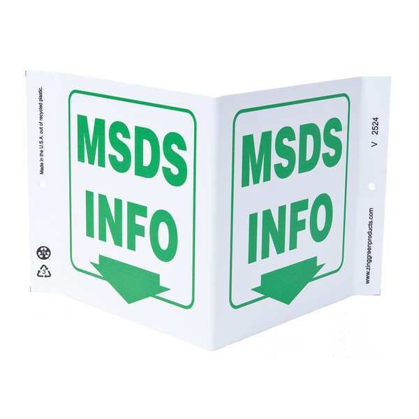 MSDS Sign, 7 in Height, 12 in Width, Plastic, V-Shaped, English