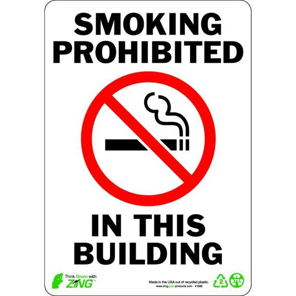 No Smoking Sign, Sign Subject Matter No Smoking, Height 10 in, Width 7 in, Sign Material Plastic, Sign Mounting Style Surface, Legend Smoking Prohibited In This Building, Printed Language English, Sign Shape Rectangle