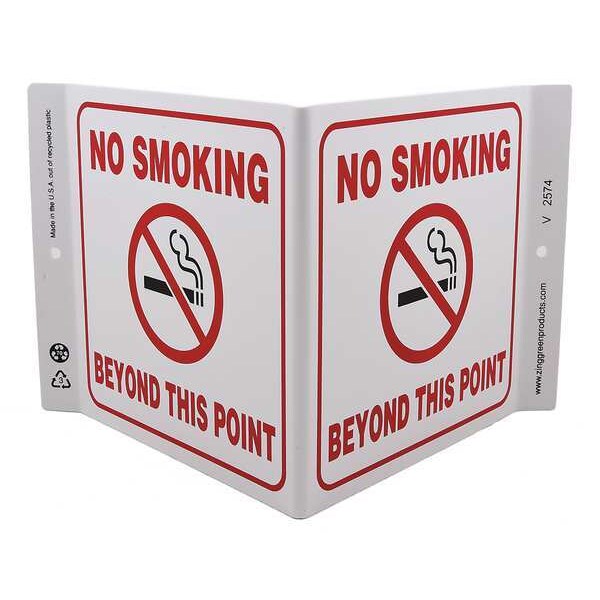 No Smoking Sign, Sign Subject Matter No Smoking, Height 7 in, Width 12 in, Sign Material Plastic, Sign Mounting Style With Mounting Holes, V-Shaped, Legend No Smoking Beyond This Point, Printed Language English, Sign Shape V-Shaped