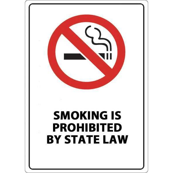 No Smoking Sign, State Law, Sign Subject Matter No Smoking, Height 14 in, Width 10 in, Sign Material Aluminum, Sign Mounting Style Surface, Legend Smoking is Prohibited by State Law, Printed Language English, Sign Shape Rectangle