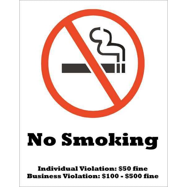 No Smoking, Individual Violation: 50 fine, Business Violation: 100 - 500 fine