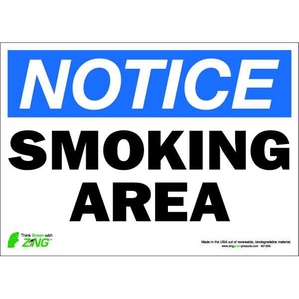 Notice No Smoking Sign, Sign Subject Matter No Smoking, Height 10 in, Width 14 in, Sign Material Polyester, Sign Mounting Style Adhesive Surface, Header NOTICE, Legend Smoking Area, Printed Language English, Sign Shape Rectangle