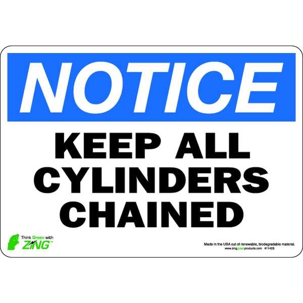 Notice Sign, Sign Subject Matter Chemical, Gas or Hazardous Materials, Height 7 in, Width 10 in, Sign Material Polyester, Sign Mounting Style Adhesive Surface, Header Notice, Legend Keep All Cylinders Chained, Printed Language English, Sign Shape Rectangle
