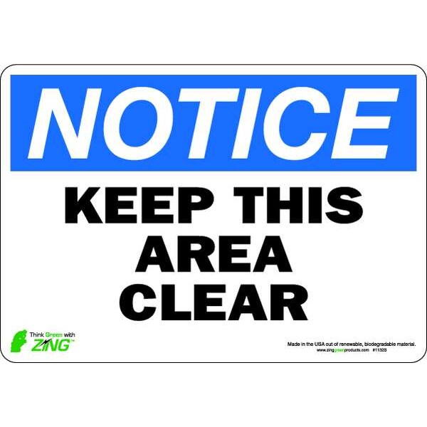 NOTICE Sign, Keep Area Clear, 7X10", ADH, 1132S