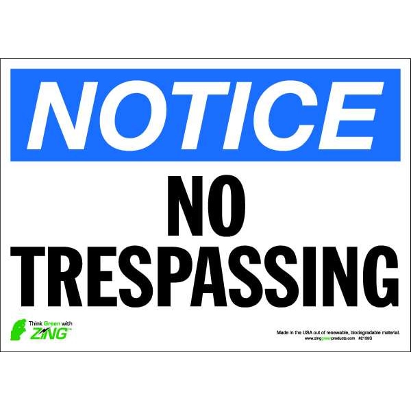 NOTICE Sign, No Trespassing, 10X14", ADH