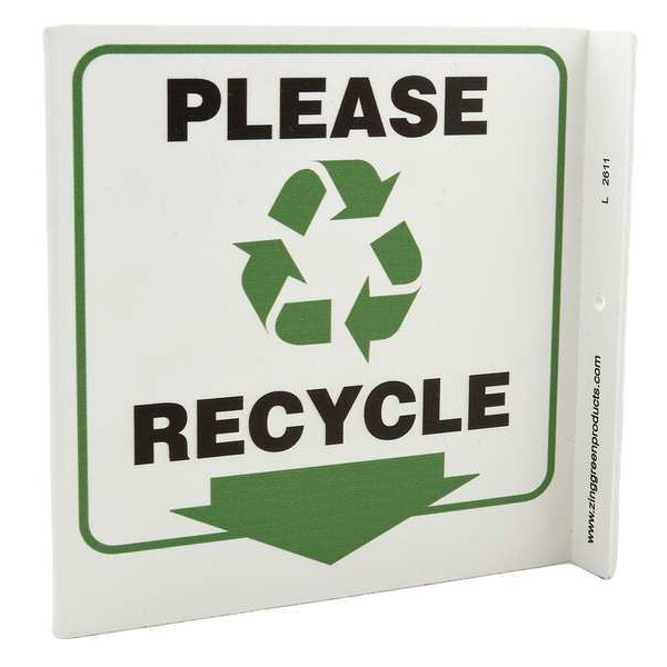 Recycling Sign, Sign Subject Matter Recycling, Height 7 In., Width 7 In., Sign Material Plastic, Sign Mounting Style With Mounting Holes, L-Shaped, Legend Please Recycle, Printed Language English, Sign Shape L-Shaped