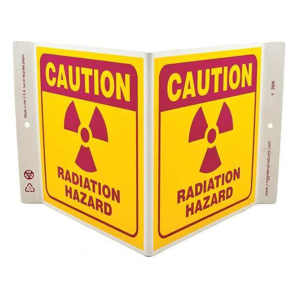 Caution Radiation Sign, Sign Subject Matter Radiation and X-Ray, Height 7 in, Width 12 in, Sign Material Plastic, Sign Mounting Style With Mounting Holes, V-Shaped, Legend Radiation Hazard, Printed Language English, Sign Shape V-Shaped