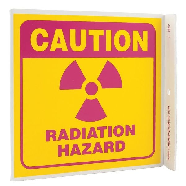 Caution Radiation Sign, Sign Subject Matter Radiation and X-Ray, Height 7 in, Width 7 in, Sign Material Plastic, Sign Mounting Style With Mounting Holes, Legend Radiation Hazard, Printed Language English, Sign Shape L-Shaped