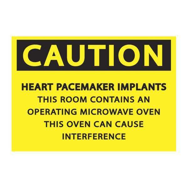 Radiation Sign, Sign Subject Matter Health Hazard, Height 7 in, Width 10 in, Sign Material Plastic, Sign Mounting Style Surface, Legend Caution, Heart Pacemaker Implants, This Room Contains An Operating Microwave Oven, This Oven Can Cause Interference, Printed Language English, Sign Shape Rectangle