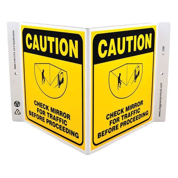 Safety Sign, 7 in H, 12 in W, Plastic, V-Shape Projection, English, 2586