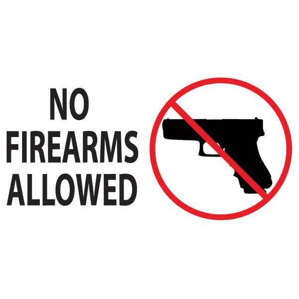 Security Labels, Horizontal Rectangle, Number of Printed Sides 1, English, Sign Legend No Firearms Allowed, Sign Legend Background Color White, Sign Legend Style Symbol and Text, Sign Legend Character Height 7/8 in, Package Quantity 2