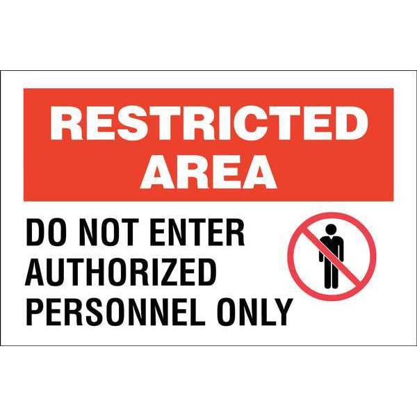 Security Sign, Sign Subject Matter Authorized Personnel and Restricted Access, Height 10 in, Width 14 in, Sign Material Aluminum, Sign Mounting Style Surface, Legend Restricted Area Do Not Enter Authorized Personnel Only, Printed Language English, Sign Shape Rectangle