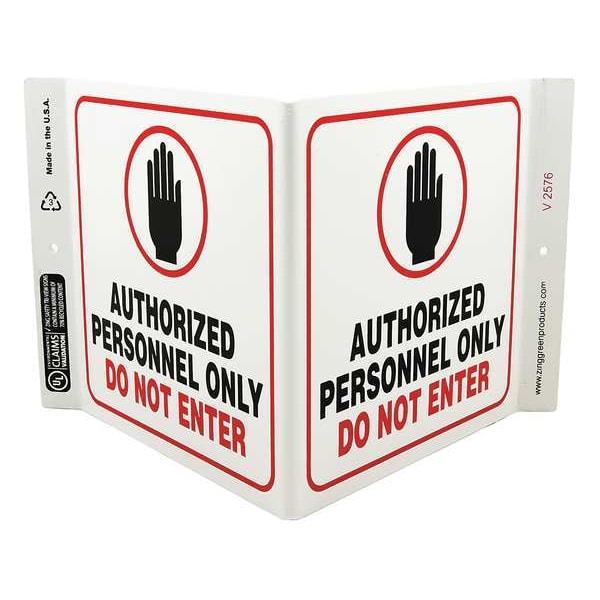 Security Sign, Sign Subject Matter Authorized Personnel and Restricted Access, Height 7 in, Width 12 in, Sign Material Plastic, Sign Mounting Style With Mounting Holes, V-Shaped, Legend Authorized Personnel Only Do Not Enter, Printed Language English, Sign Shape V-Shaped