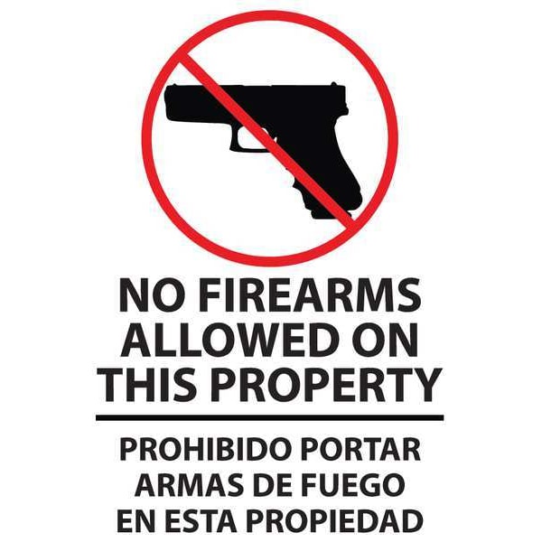 Security Window Decals, Vertical Rectangle, Number of Printed Sides 1, English, Spanish, Sign Legend No Firearms Allowed On This Property/Prohibido Portar Armas De Fuego En Esta Propiedad, Sign Legend Background Color White, Sign Legend Style Symbol and Text, Sign Legend Character Height 7/8 in, Package Quantity 2