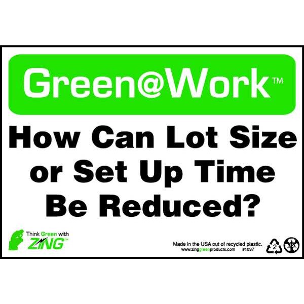 Conservation Sign, Sign Subject Matter Recycling, Height 7 In., Width 10 In., Sign Material Plastic, Sign Mounting Style Surface, Header Green@Work, Legend Green@Work(TM) How Can Lot Size or Set Up Time Be Reduced, Printed Language English, Sign Shape Rectangle