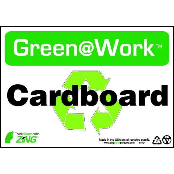 Recycling Sign, Sign Subject Matter Recycling, Height 7 In., Width 10 In., Sign Material Plastic, Sign Mounting Style Surface, Header Green@Work, Legend Green@Work(TM) Cardboard, Printed Language English, Sign Shape Rectangle