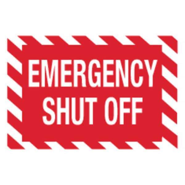 Facility Sign, Sign Subject Matter Facility, Height 10 In., Width 14 In., Sign Material Aluminum, Sign Mounting Style Surface, Legend Emergency Shut Off, Printed Language English, Sign Shape Rectangle
