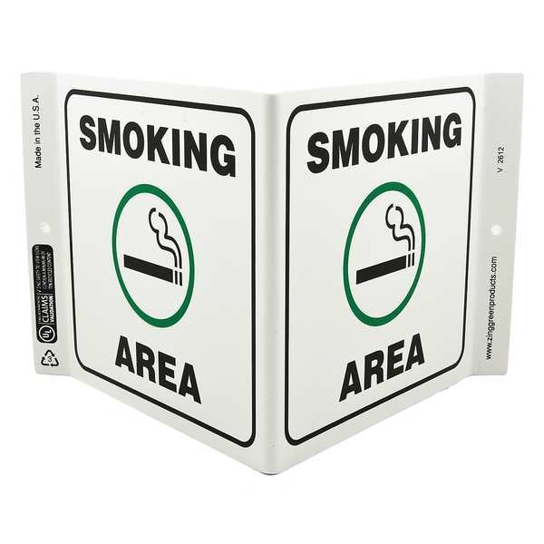 Smoking Area Sign, Sign Subject Matter No Smoking, Height 7 in, Width 12 in, Sign Material Plastic, Sign Mounting Style With Mounting Holes, V-Shaped, Legend Smoking Area, Printed Language English, Sign Shape V-Shaped