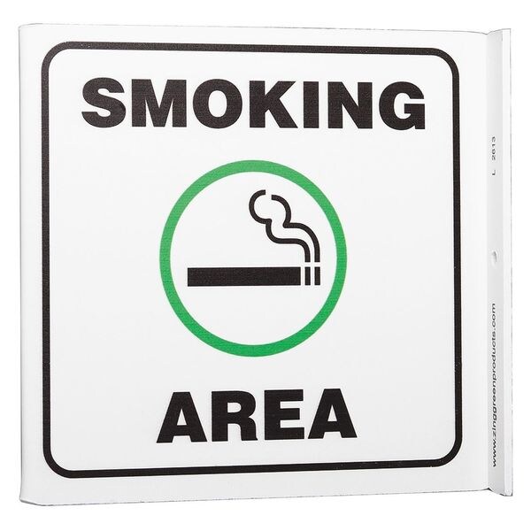 Smoking Area Sign, Sign Subject Matter No Smoking, Height 7 in, Width 7 in, Sign Material Plastic, Sign Mounting Style With Mounting Holes, L-Shaped, Legend Smoking Area, Printed Language English, Sign Shape L-Shaped
