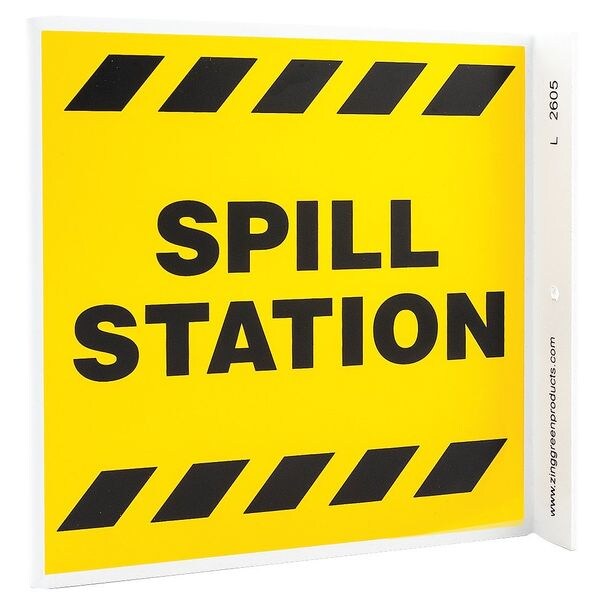 Spill Station Sign, Sign Subject Matter Spill Control, Height 7 In., Width 7 In., Sign Material Plastic, Sign Mounting Style With Mounting Holes, L-Shaped, Legend Spill Station, Printed Language English, Sign Shape L-Shaped
