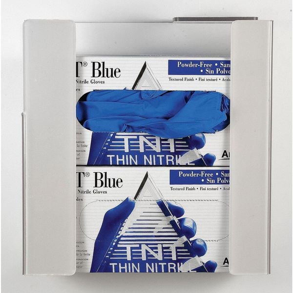 Universal Mount Glove Dispenser, Color White, Depth 4 in, Height 10 1/2 in, Material PETG, Width 12 in