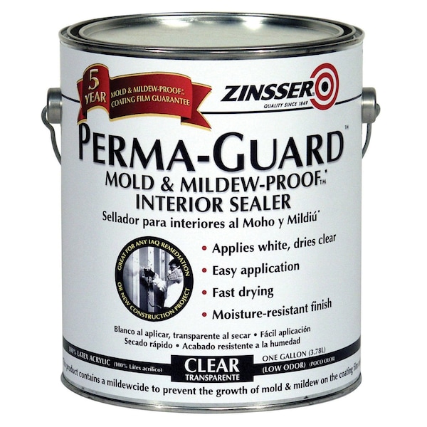 Sealer, Coating Application Primer, Color Family Clear, Compatible Surface Material Cement, Ceramic, Concrete, Gypsum, Metal, Stucco, Wood, Sheen Flat, Resin Type Acrylic, Color Clear, Container Size 1 gal, Coverage Area 300 to 400 sq ft/gal, Base Type Water, Dry Time 2 hr, Use Location Interior, Sub Brand Perma-Guard, Application Method Brush, Roller, Spray, Dry Time Tack Free 1 hr, Dry Time to Recoat 2 hr, Features Antimicrobial, Soap and Water Cleanup, Finish Texture Smooth, Heat Resistant No
