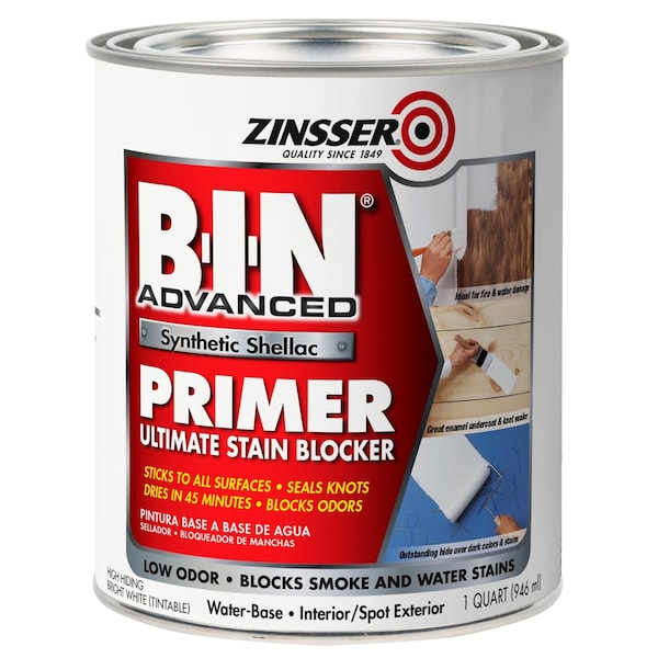 B-I-N Advanced Synthetic Shellac Primer is a high-performance primer sealer designed for exceptional stain blocking on interior surfaces and exterior spot applications. It offers fast drying, low odor, and excellent hiding power, making it ideal for new construction, remodeling projects, and fire or water damage restoration. This synthetic shellac formula delivers reliable whole-surface priming and superior stain resistance. B-I-N Advanced can be used both under and over any latex or oil-based architectural paint.