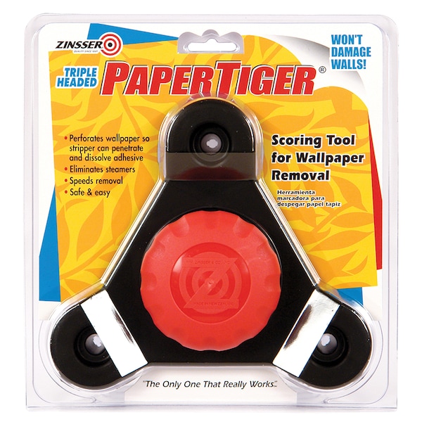 Scoring tool for wallpaper removal. Scores an entire room in minutes. Perforates wallcovering to allow wallpaper remover to penetrate. Won't damage walls. Single-head tool.