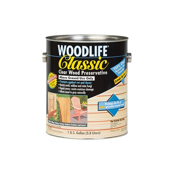 Woodlife Classic, Gallon Wood Preservative, Dries Clear, VOC Compliant, Water Repellent Preservatives With 1 Coat, Protection Against Decay, Fungi Mildew, Ideal For All Natural Surfaces Including Unfinished, New Weathered Wood Pressure Treated Wood, Controls Warping, Shrinking Splitting, Paintable Stainable