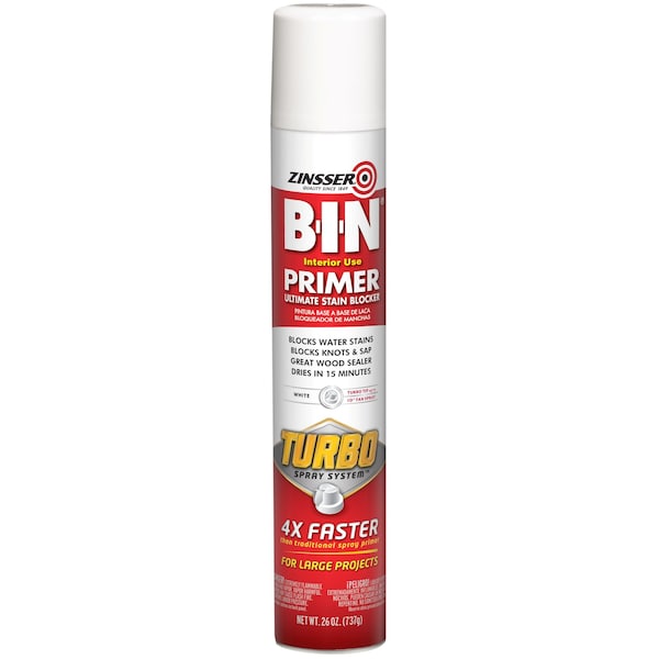 Perfect Aerosol Solution for Priming Medium to Large Sized Projects Fast, Zinsser Bin with Turbo Spray System is Great for Blocking Stains and Odors from Water, Smoke and Fire and is Perfect for Disaster Restoration Jobs