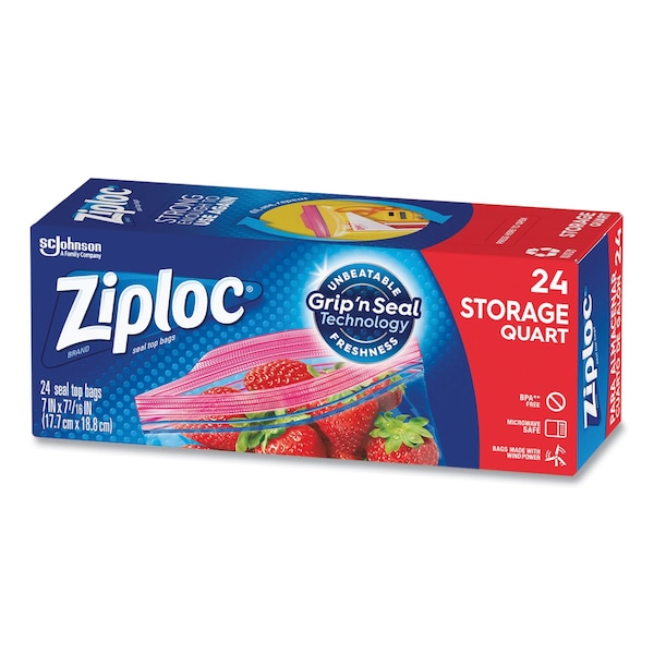 Protect your food with this storage bag by Ziploc. Each bag blocks out air and locks in freshness, which means less wasted food and money. Plus, our Smart Zip Plus seal lets you feel, hear, and see the bag close from edge-to-edge, so you can be sure that your food is protected. Great for storing and organizing just about anything: vegetables, fruit, cosmetics, yarn, business cards, and conveniently storing meat, seafood, or poultry in the refrigerator. Bag is microwave-safe; when defrosting and reheating, open zipper at 1in to vent.