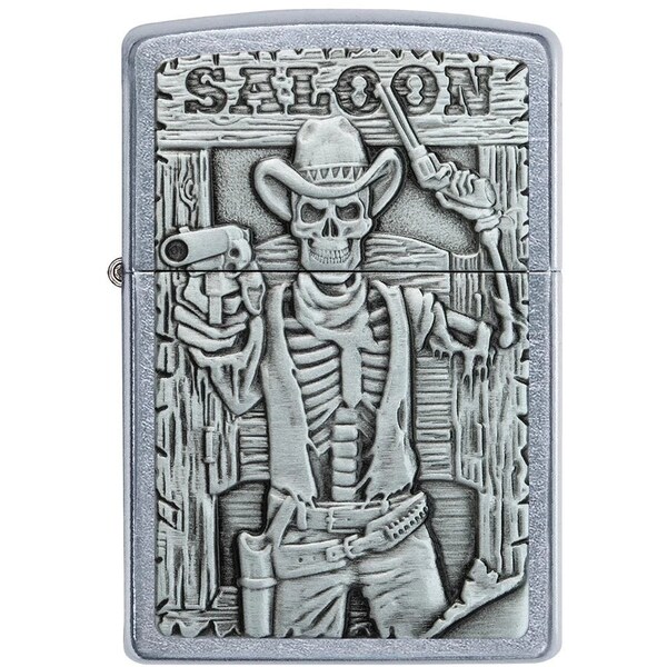 2024 Zippo Cowboy Skeleton Saloon Emblem On Street Chrome, (Discontinued)